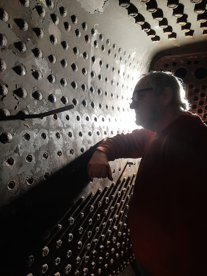 the pit where the driving wheel springs have now been fitted. John Dixon is